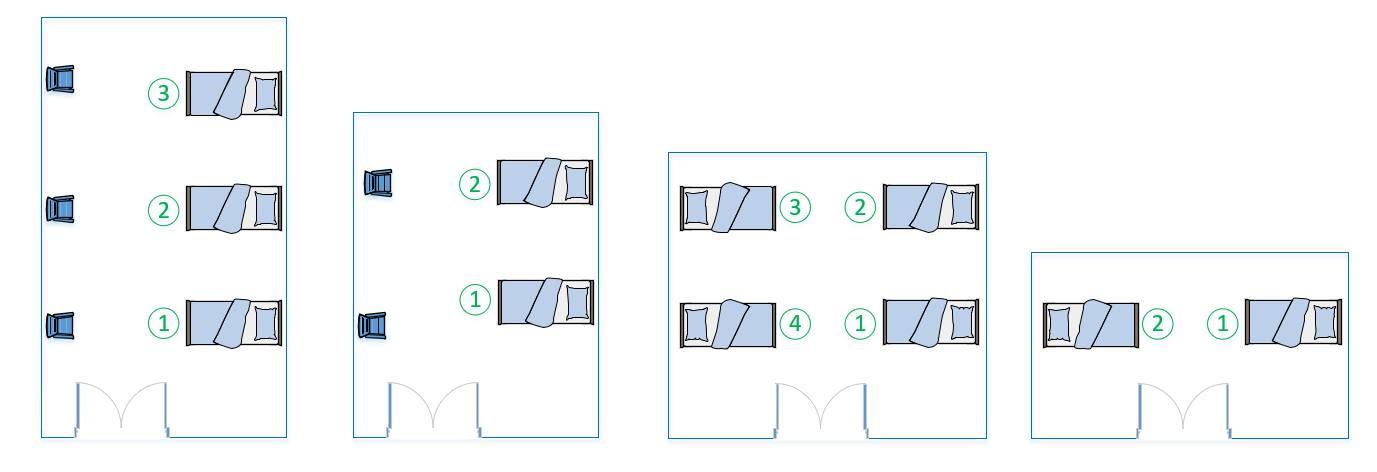 The images below give examples of the various bed layouts and the associated numbering.