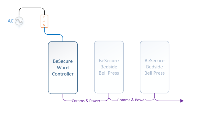 The Bedside Units are powered from the Ward Controller.