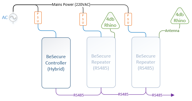 All BeSecure Repeaters and Controller in the field must be installed in the same way. This will reduce support efforts in tracing and establishing faults in the unlikely event that they arise.