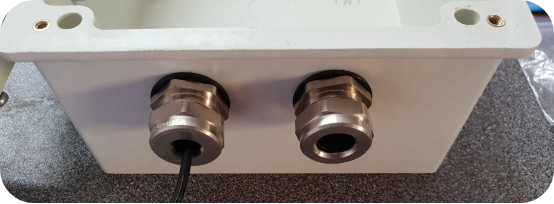 Insert the antenna cable through the right gland