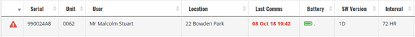 Red exclamation mark – The device has not reported in for an extended period and needs administrator or user intereaction to test