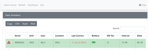 It is important to remember that each Panic Activator is set to report in at a specific time of day. If it is not on site or is in a physical location that in some way impeded its ability to report in it could miss that report period.