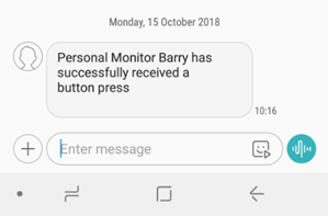 The user will received a SMS each time they push the button confirming that their Panic Activator has been tested and is working as expected.
