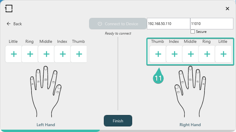 11. If you are using Morpho wave units, select a finger on either hand to begin registration for that hand. Follow your Morpho Wave readers prompts. It will continue to ask you to wave your hand until it captures all your fingers.