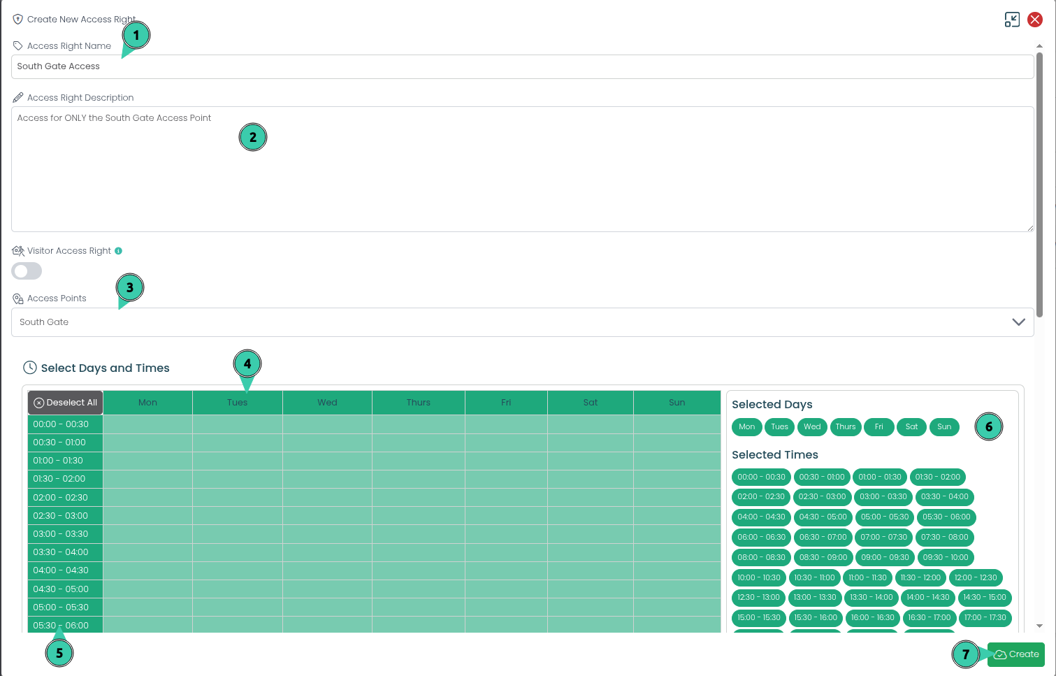 Note: When creating Access Rights, you will still need to assign the Access Right to a Person’s Access Method. In order for it to take effect.