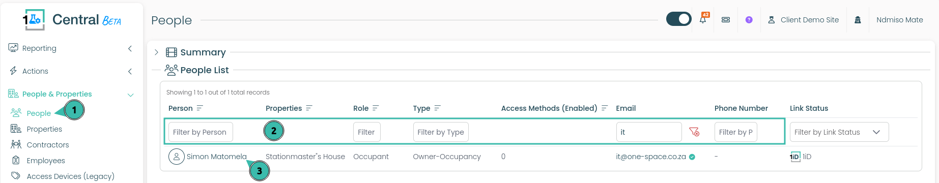 Find the person you need to manage by entering the persons info in any of the filter fields here.
