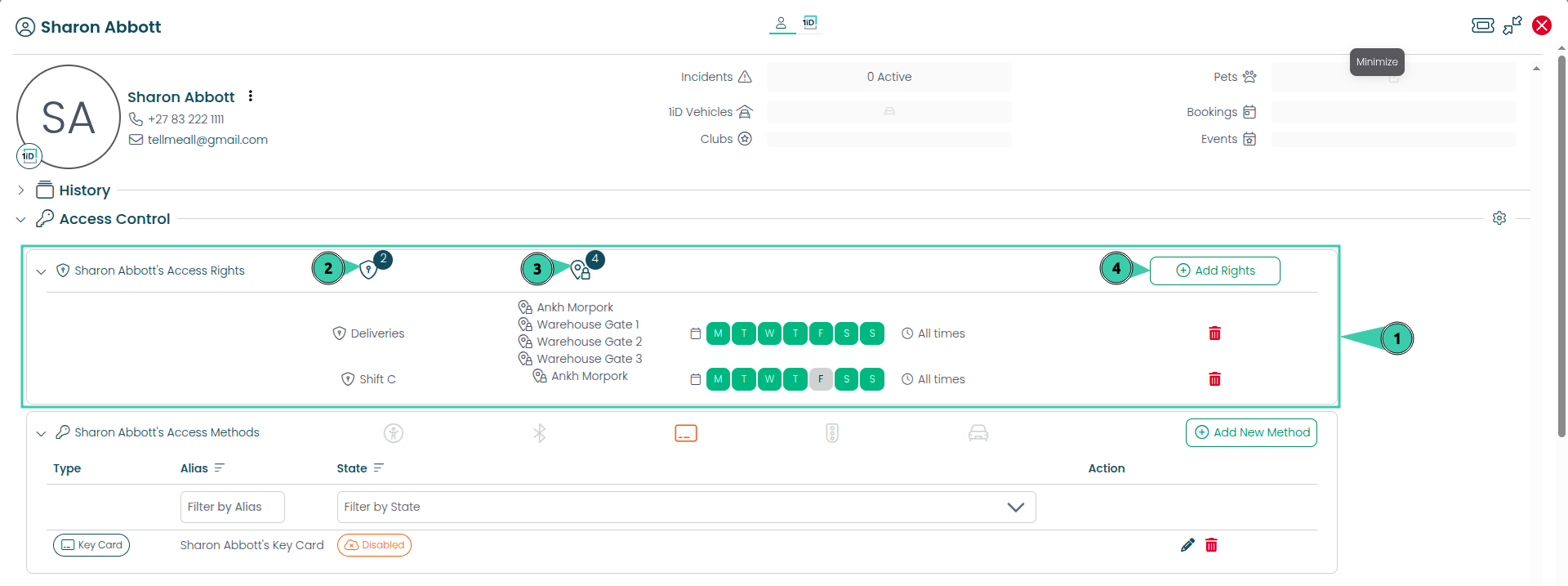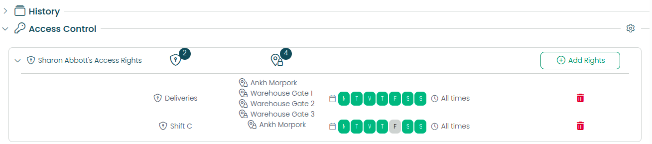 In this example to the left, the person has 2 Access Rights assigned to them: