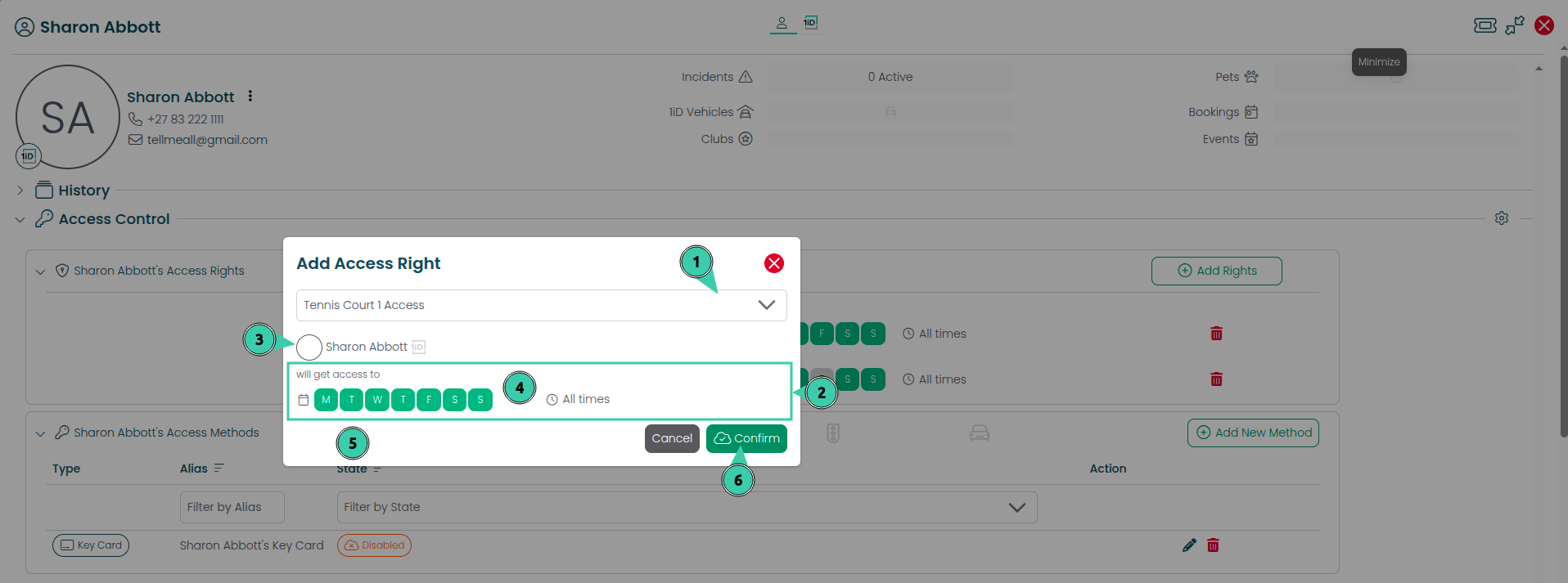 You must define which Property and what Access Rights this person will have on their Access Method.