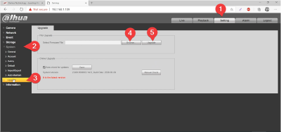 Select the Upgrade button to initiate the upgrade process. The camera will reboot itself on a successful upgrade.