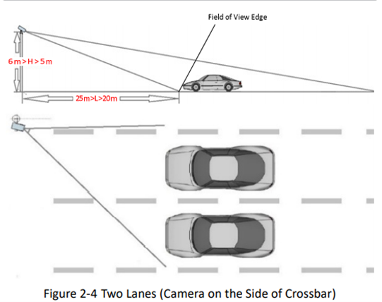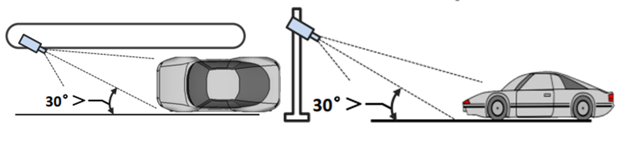 The camera should not be mounted more than 5.5meters above the ground with the below angles. (Side of the road installation)