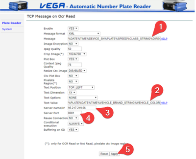 %PLATE%DATE%TIME%VEHICLE_BRAND_STRING%VEHICLE_COLOR_STRINGThe Server name/IP field should have the following inserted: